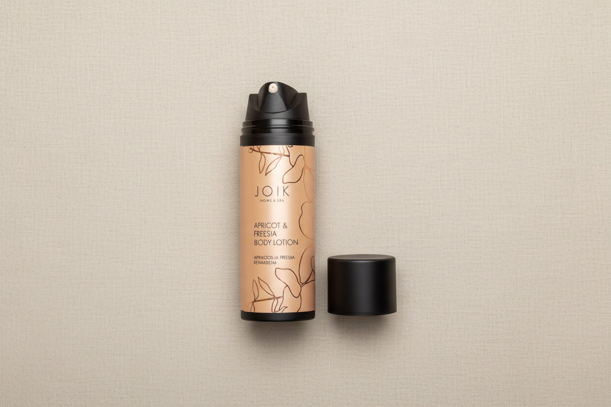 Airless pump dispensers protect the integrity of the formula and ensure the product is used fully — not wasted, not discarded early. Sustainability, for JOIK, is measured by how completely something is used, not how it is presented.